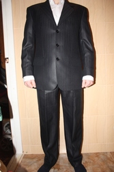 Продам классический костюм.Темно-синего цвета, в полоску.Ткань приятная на ощупь.Качественный пошив.С внутренним карманом. Костюм почти новый, одевался всего лишь на свадьбу.